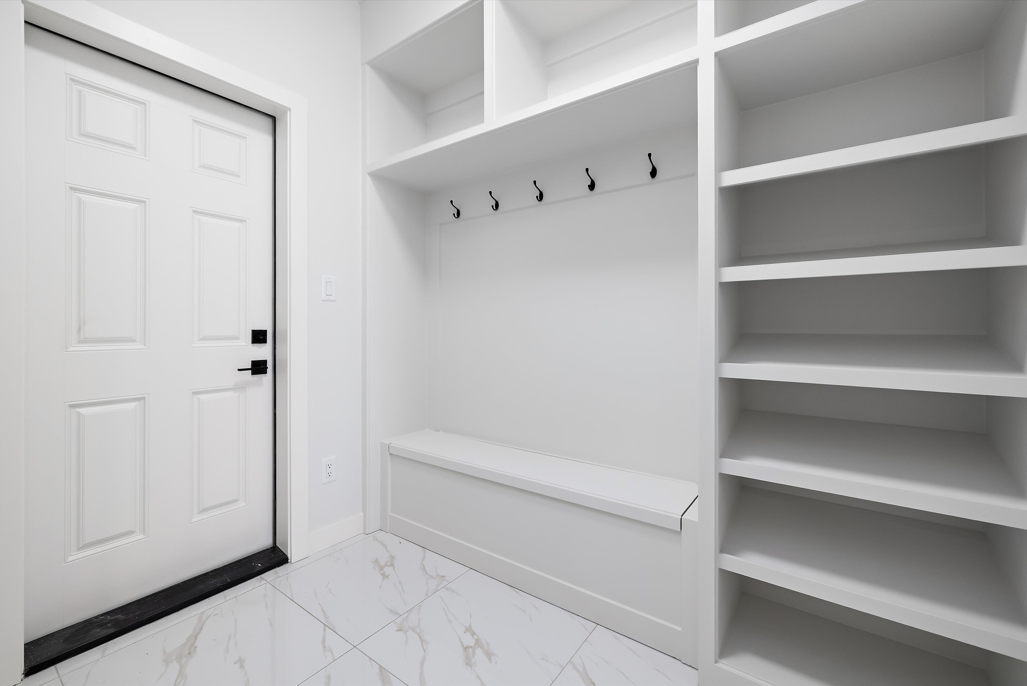 *The Mudroom is designed with an Alberta winter in mind, coming equipped with a built-in bench, storage cubbies and MDF shelving.