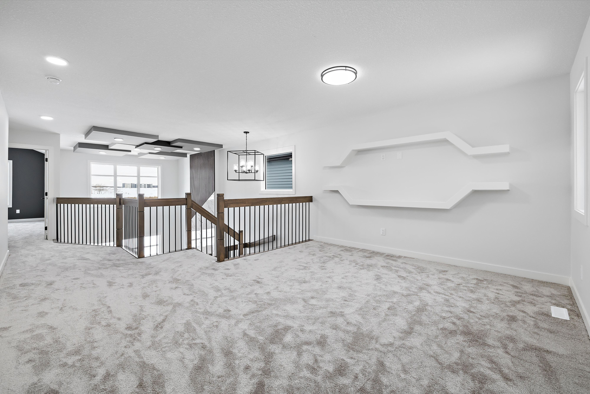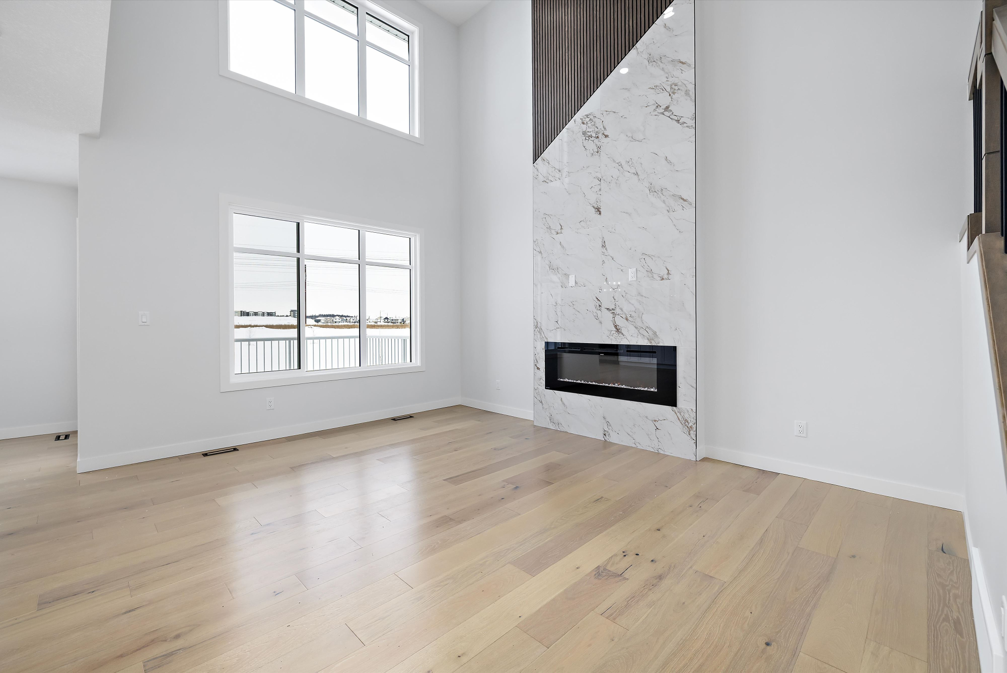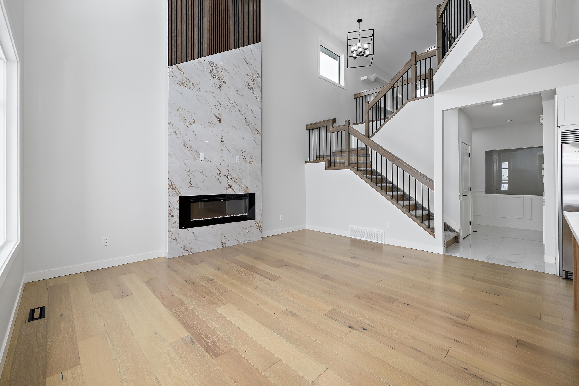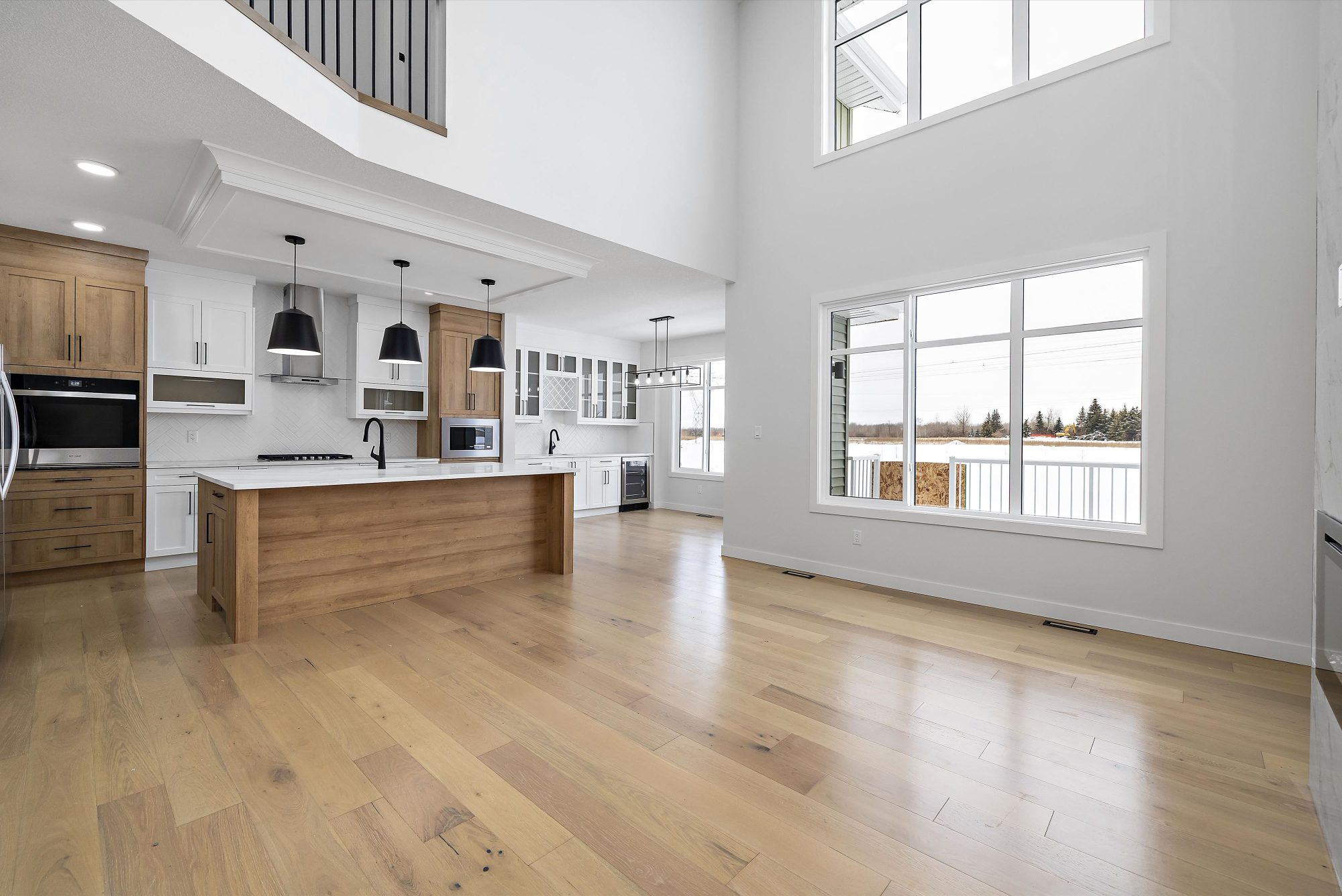 *The Great Room features 18-feet high ceilings and a 60-inch electric fireplace with stunning triple pane windows and optional boxed coffered ceiling.