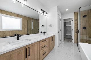 *The Master Bedroom features a spacious walk-in closet with MDF finishes and a spa-like Ensuite with freestanding tub, standing shower, and double sinks.