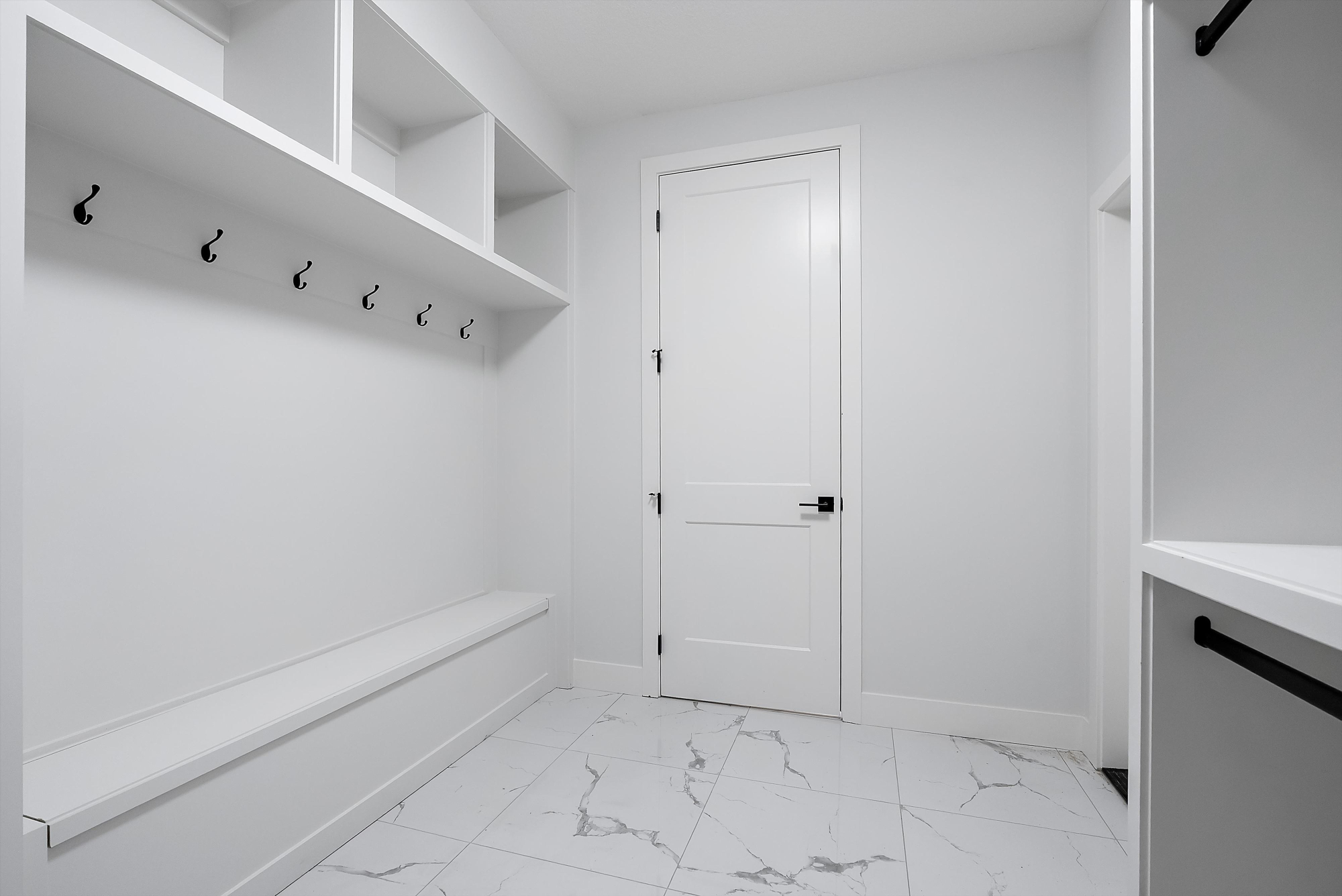 *The Mudroom is designed with an Alberta winter in mind, coming equipped with a built-in bench, storage cubbies and MDF shelving.