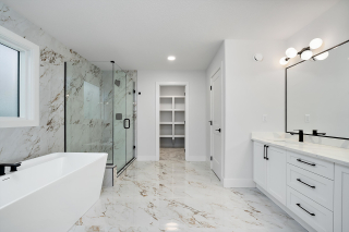 *The Master Bedroom features a spacious walk-in closet with MDF finishes and a spa-like Ensuite with freestanding tub, standing shower, and double sinks.